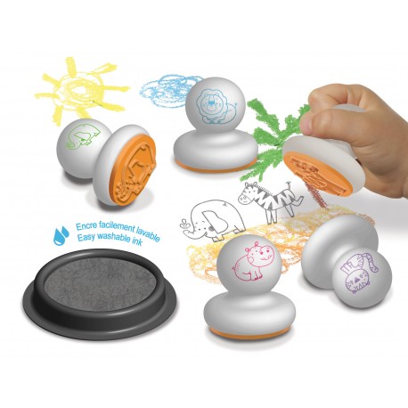 Un pack sur le thème de la savane contenant 5 tampons en mousse et un encreur maxi format. La poignée ronde facilitera la prise en main. Ce coffret permettra aux tout-petits de découvrir le plaisir du tampon tout en les aidant à développer leur motricité fine.