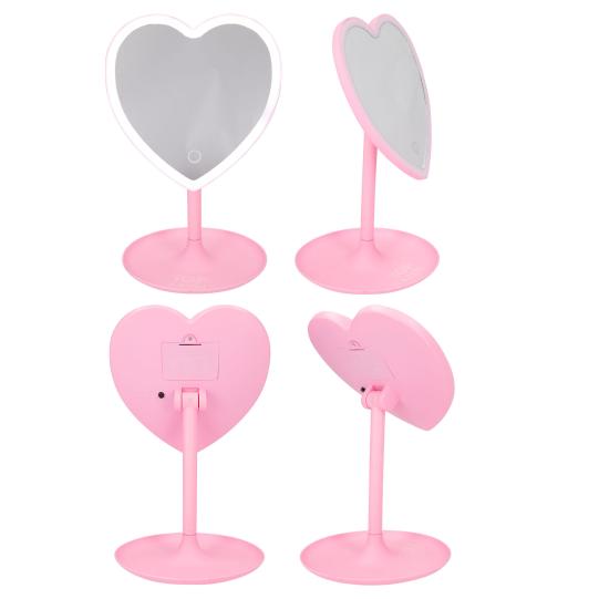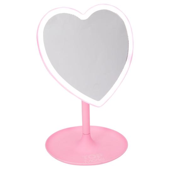 Miroir, miroir… Grâce à ce miroir de maquillage rose en forme de coeur et à l’éclairage LED intégré dans sa bordure, on dispose d’une lumière parfaite pour sa routine beauté. Le pied rond du miroir permet de poser de petits objets comme des bijoux. L’inclinaison du miroir est réglable. De TOPModel. Piles fournies (3x AAA, 1,5V).