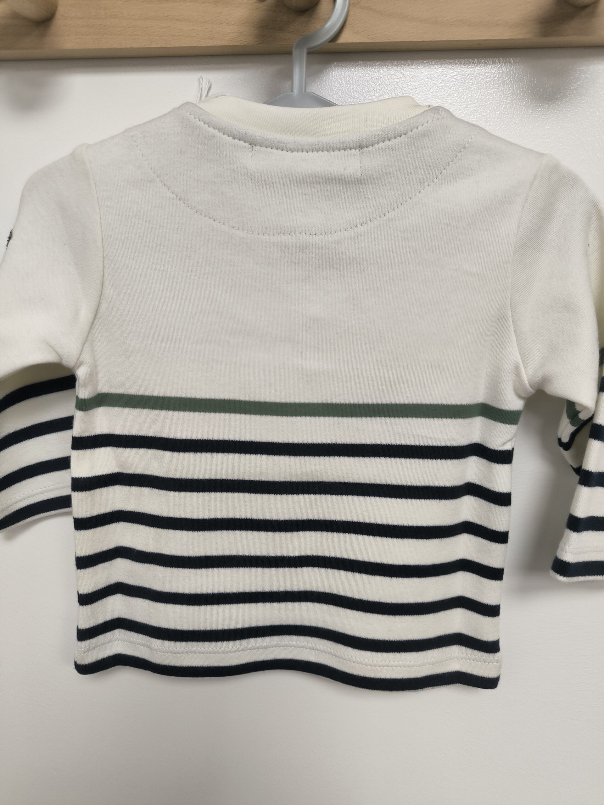 Tee-shirt manche longue avec ouverture facile sur le devant pour le passage de la tête .